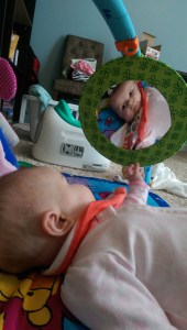 8:00 – 10:00 a.m. Mostly playtime. We play on the playmat, listen to music, read books, explore sensory bags, sing songs, practice tummy time and usually have 1-2 more feedings. Since she’s not mobile yet (although she is rolling from back-to-side and front-to-back) I can often sneak off for a few minutes to do a load of laundry or straighten up elsewhere in the house. But those times are quickly coming to an end.